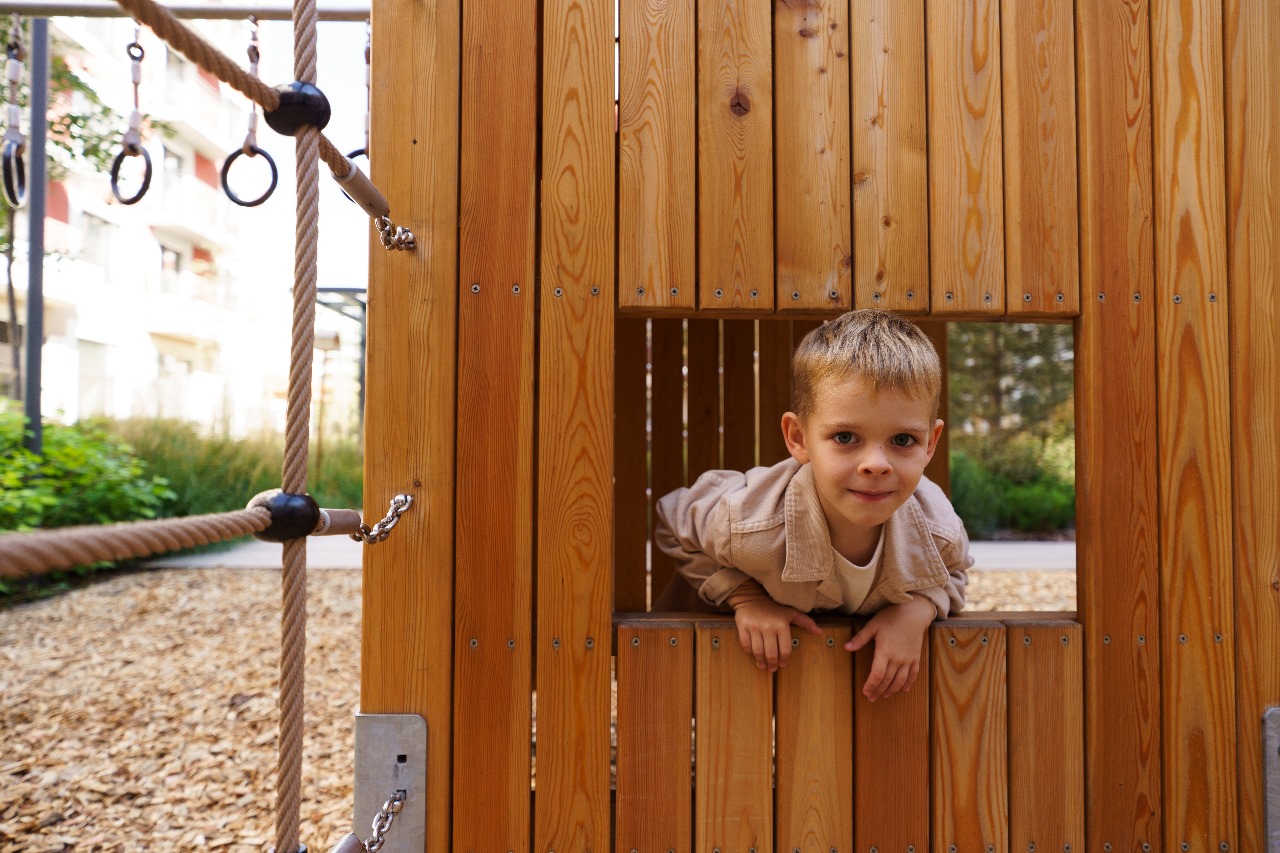Современные жилые кварталы стремятся создавать не просто функциональные дворы, а полноценные пространства для семейного отдыха. Один из лучших способов добиться этого — обустроить во дворе натуральную детскую площадку из дерева и металла. Такие площадки стимулируют разнообразие игр и способствуют здоровому развитию детей. Исследования показывают, что природные элементы расширяют спектр игр, помогают детям чаще находиться на свежем воздухе и положительно влияют на физическое, социальное и эмоциональное здоровье.