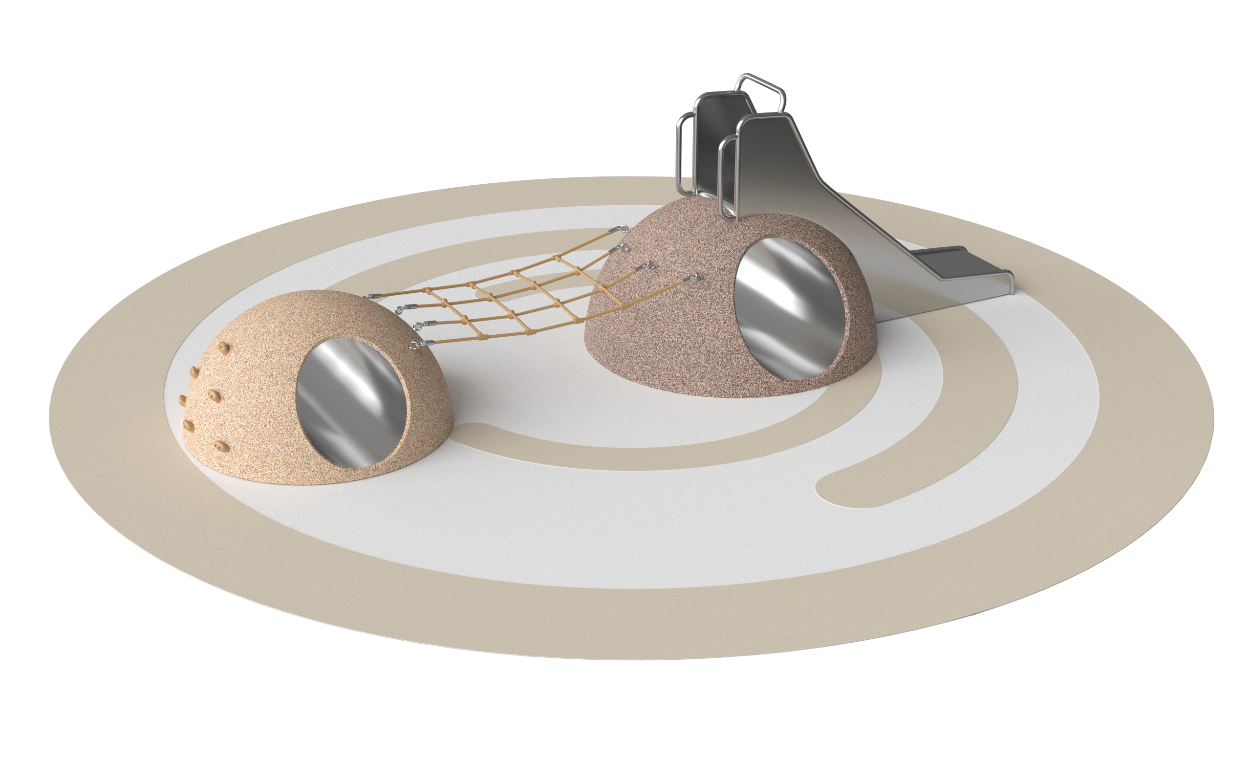 Полусферы с переходом и зацепами 3400*1800*900 мм (d=1500+1800), Dтоннеля=600мм + канат + зацепы